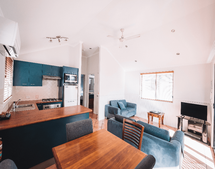 Love to be by the water? Walk down to the marina each morning while staying in one of our two-bedroom villas. It’s a fisherman’s dream. These villas comfortably sleep up to 4 persons, with a queen bed in the main bedroom and 2 single beds in the second bedroom. After a big day by the water, head back to the cabin, put the air-conditioning on and enjoy some well-deserved TV time in the living area. Wanting to bring Fido along for the fishing trip? We have a number of villas that are dog-friendly, please notify us if you are bringing a dog. Additional charges apply.